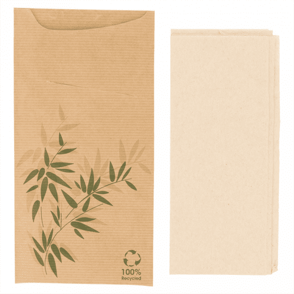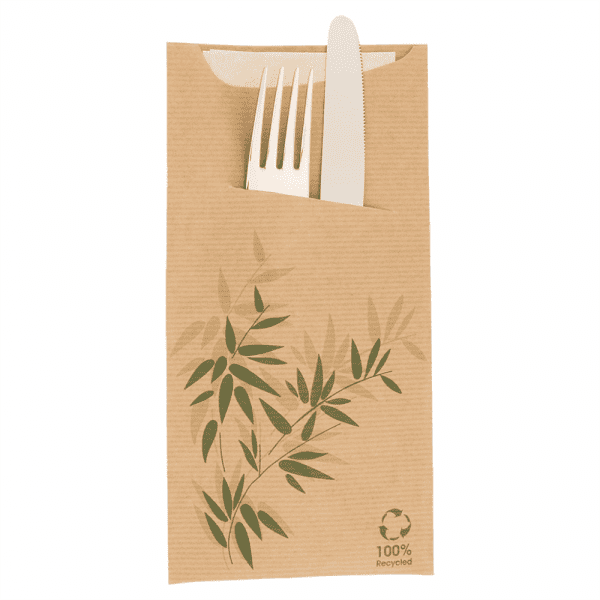 Just In Time Papieren bestekzakjes gemaakt van hernieuwbare grondstoffen. Bespaar tijd met het voorbereiden van uw couverts. De servetten bestaan uit 100% gerecycleerd of FSC® gecertificeerd papier en zijn bedrukt met composteerbare inkt. Bestek is apart verkrijgbaar.