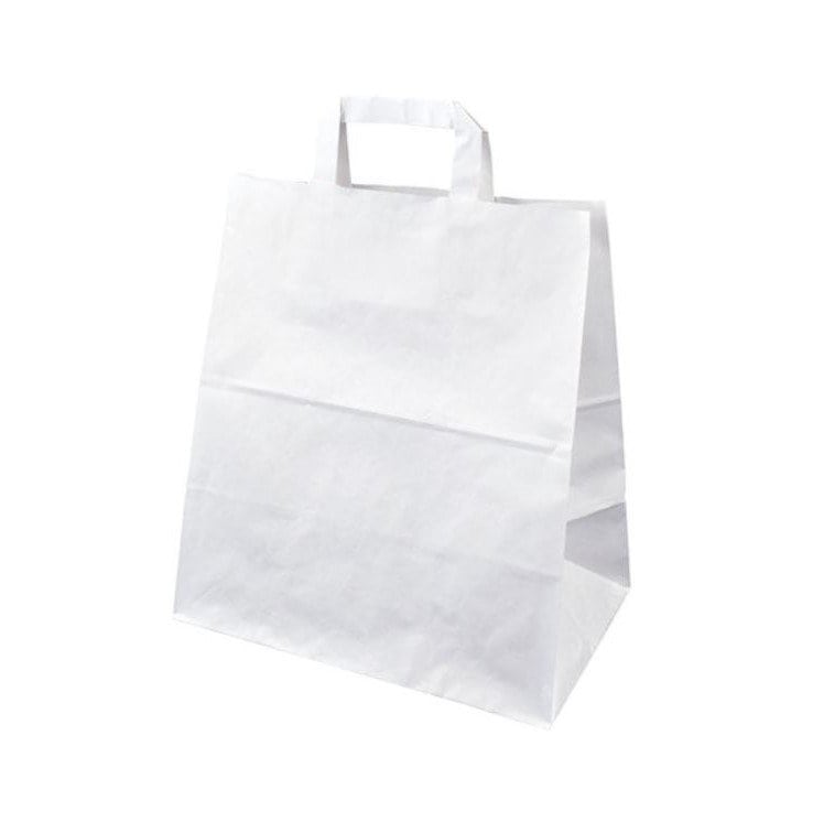 Stevige papieren draagtassen met plat papieren handvat. Biedt u afhaalmaaltijden aan of heeft u een bezorgdienst? Dan zijn onze papieren draagtassen het ideale accessoire voor het bezorgen van uw maaltijden! In onze webshop vindt u papieren draagtassen in verschillende formaten en kleuren.